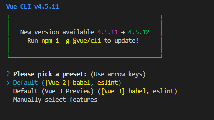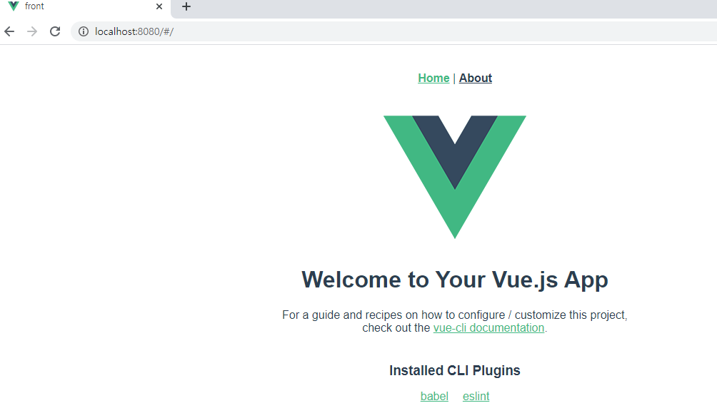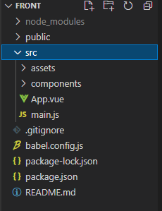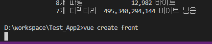 --> vue create front 명령어로 vue 프로젝트를 생성한다.