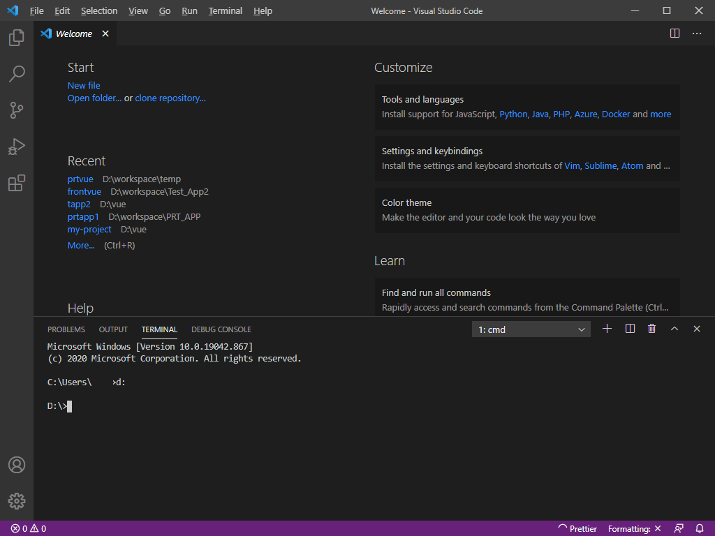 --> 우선 vscode를 열고, 터미널을 실행한다.