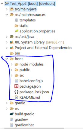 --> 이번 포스팅은 Spring boot 프로젝트 내부에 Vue를 빌드하여 생성되는 css,html,js등의 파일을 넣어