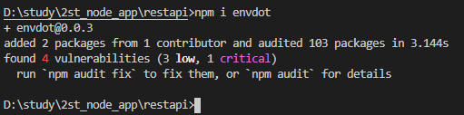 지난 포스팅에서 node.js 프로젝트를 생성하였다.