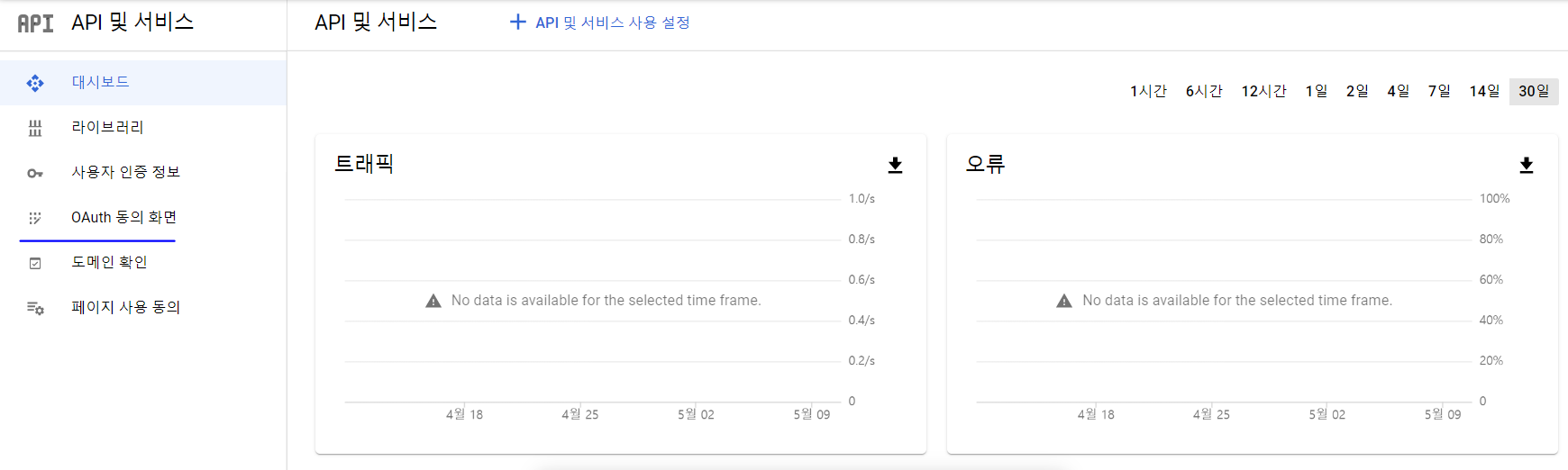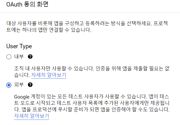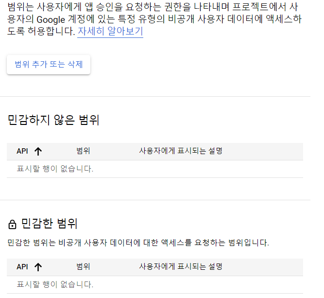 --> 여기서 OAuth 동의 화면 탭에 진입한다.