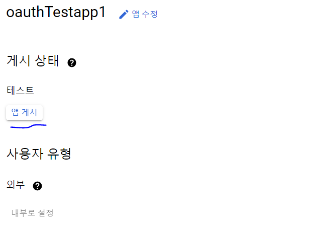 --> 이후 앱 게시 버튼을 통해 프로젝트를 외부로 노출시킨다.