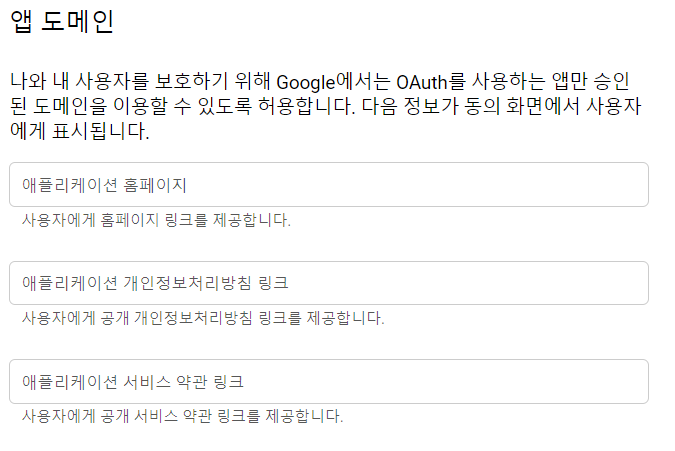 --> 앱 도메인은 공개할 도메인을 입력하라는 의미인듯 하다.