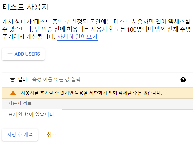 --> 생성 직후, 테스트 상태가 되는데 이 때 사용할 테스터 계정을 입력하라는 말.