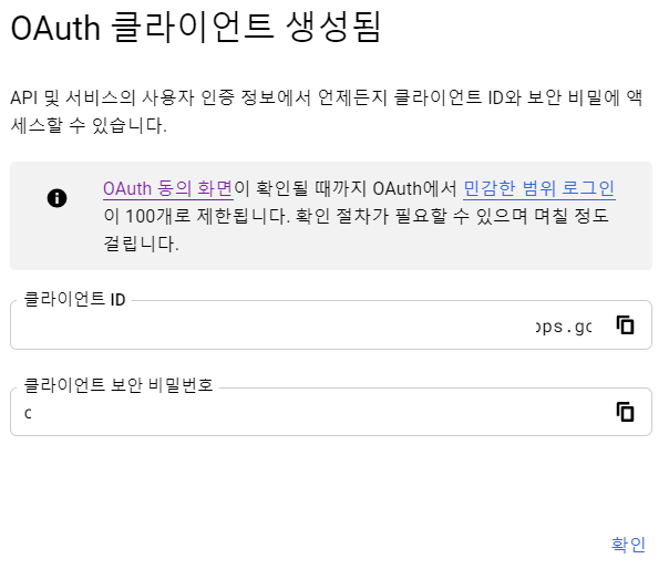 --> [클라이언트 ID] 부분에는 3번에서 생성한 본인의 클라이언트 ID를 입력하면 된다.