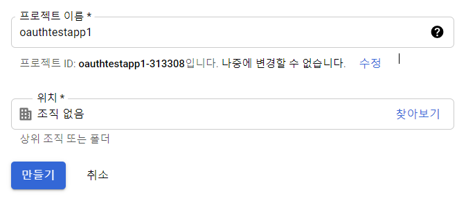 -->프로젝트 이름을 입력하고 만들기