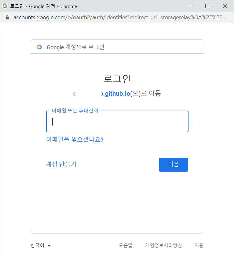 --> 승인된 자바스크립트 원본에는 github pages 의 root 디렉토리를,