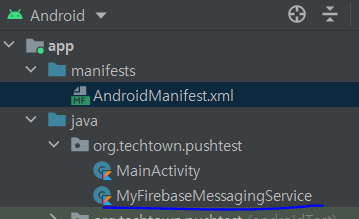 -->아래와 같이 MainActivity 가 있는 패키지에 MyFirebaseMessagingService라는 .kt파일을 하나 생성한다.