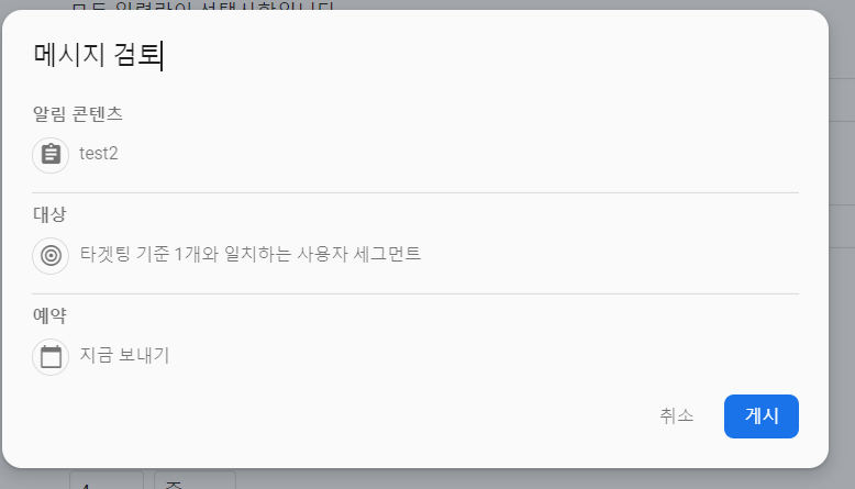 --> 테스트메시지는 날리지 않는다. 우선 push 기능 테스트가 목적이므로.