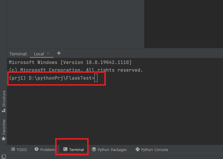 --> 파이참 IDE의 하단 부분에서 Terminal 탭을 클릭한다.