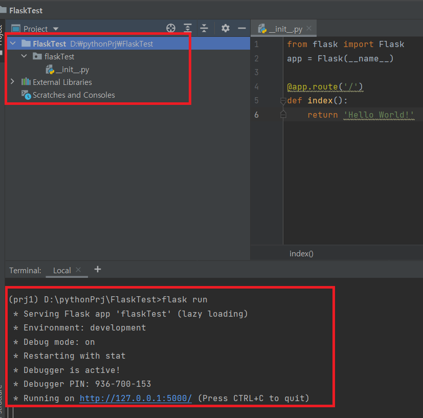 --> 여기까지가 플라스크 설치 후 실행까지의 단계이다.