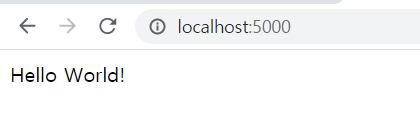 --> 정상적으로 수행된 것을 볼 수 있다. 이제 웹 브라우저를 열고 localhost:5000에 접속하여 서버 정상 구동을 확인한다.(flask 의 기본 port는 5000번이다.)