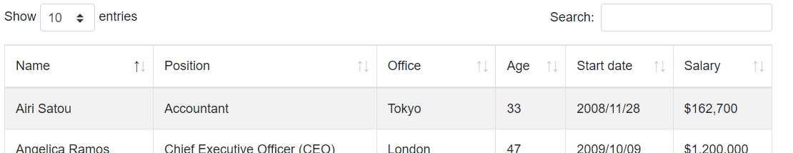dom Since: DataTables 1.10 Define the table control elements to appear on the page and in what order. Description DataTables will add a number of elements around the table to both control the table and show additional information about it. The position of
