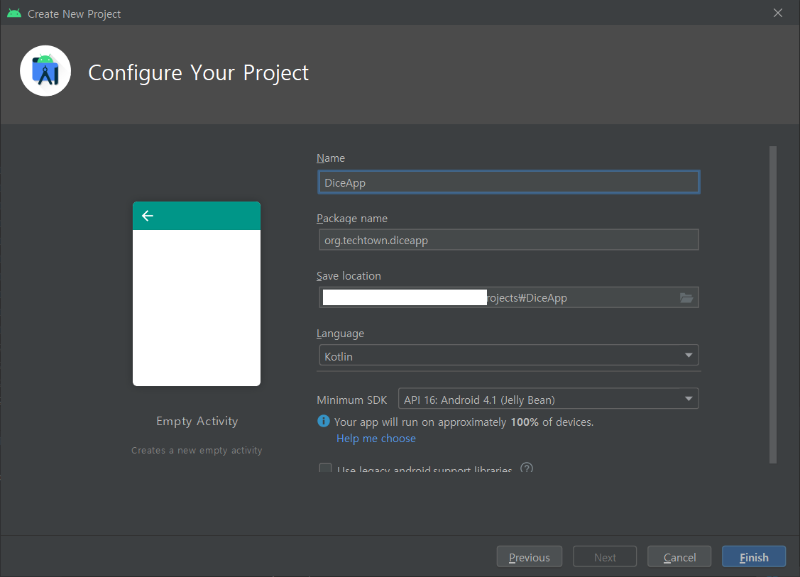 ◆ 프로젝트 Template은 Empty Activity 를 선택한다.