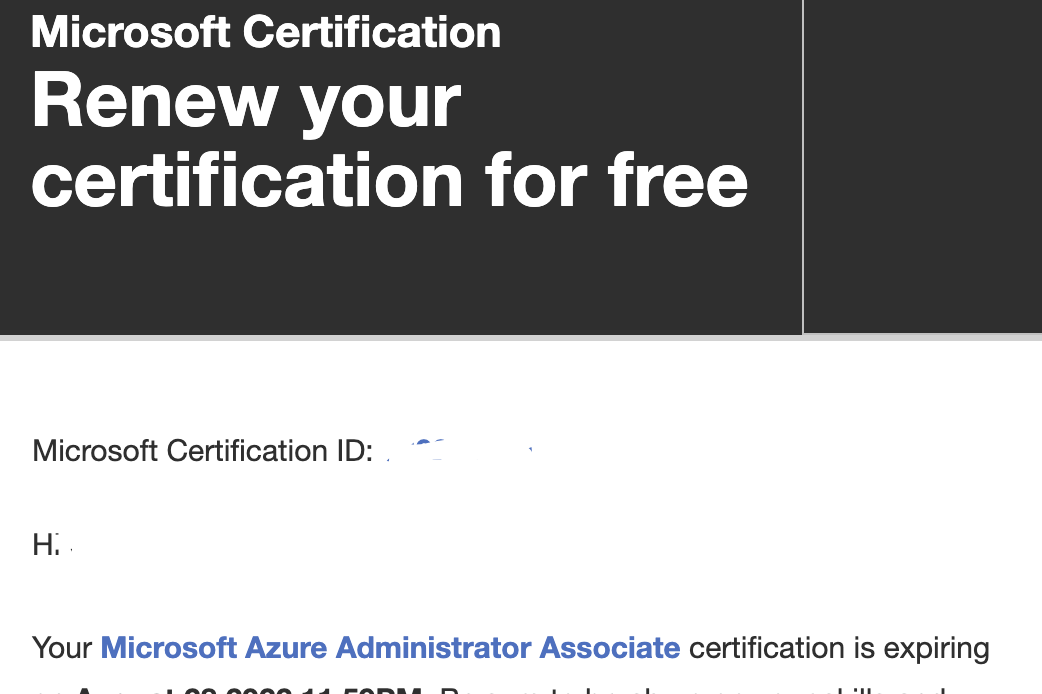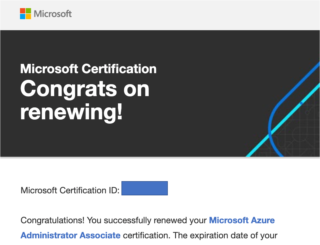 이로써 Azure 자격증이 1년 더 연장되었다.