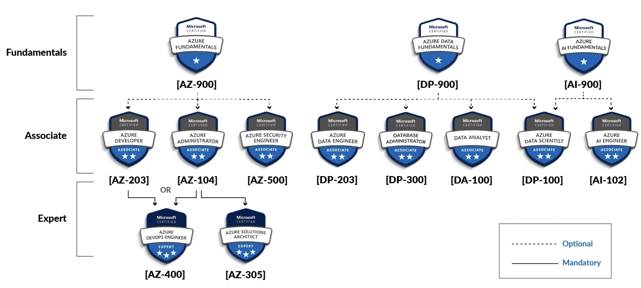 - Azure 자격증은 아래와 같은 로드맵으로 구성되어있다.