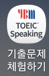 YBM사에서 무료로 배포중인 토익스피킹 기출문제 라는 앱을 다운받았습니다. 해당 앱에서는 약7~8개(몇개였는진 정확히 기억나지 않습니다) 의 모의고사를 제공합니다.