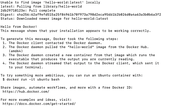 $ sudo docker run hello-world