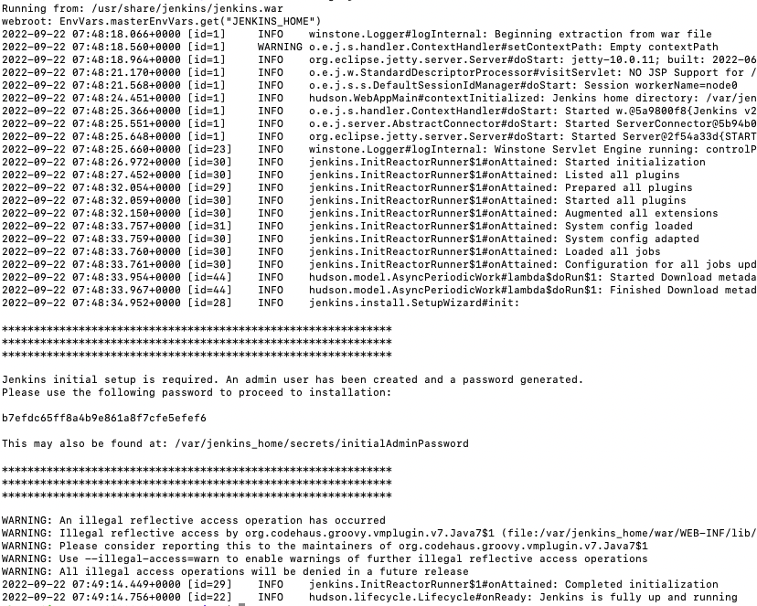 $ sudo docker logs jenkins