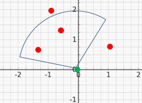 1. 일단, 원의 반지름(r)이 주어지므로, (0,0)을 원점으로 하는 원을 그려 이 범위 안에 있는 적들을 모두 파악하고, 밖의 적들은 버립니다.