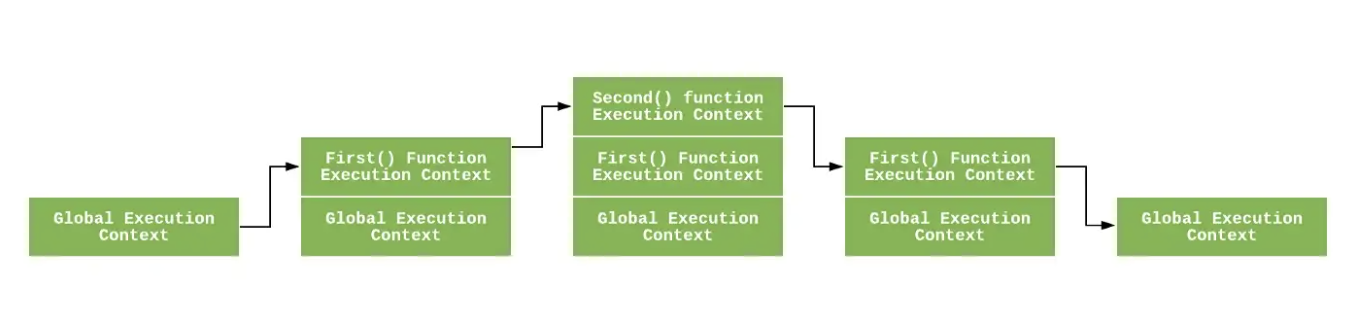 - 아래와 같은 스택의 특성을 이용한 순차적인 동작으로 인해 스코프 체이닝, 호이스팅, 클로저 개념들이 등장한다.