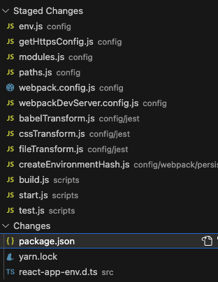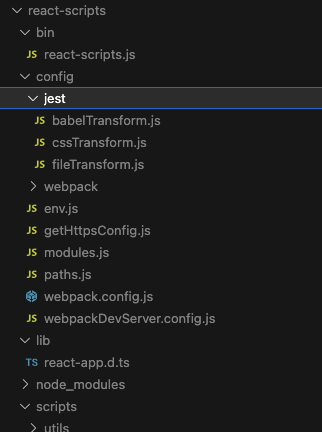 - CRA와 함께 설치되는 라이브러리인 react-scripts를 node_modules에서 찾아보면, 위에서 추가 된 파일들을 가지고 있는 것을 볼 수 있다.
