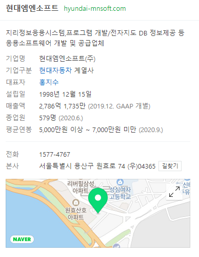 - 우선 현대엠엔소프트라는 기업을 알아봤다.