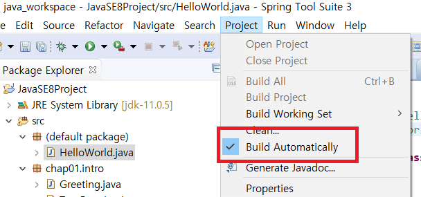 이클립스에서 프로젝트 생성하면 알아서 Class와 Java 파일 만들어준다.