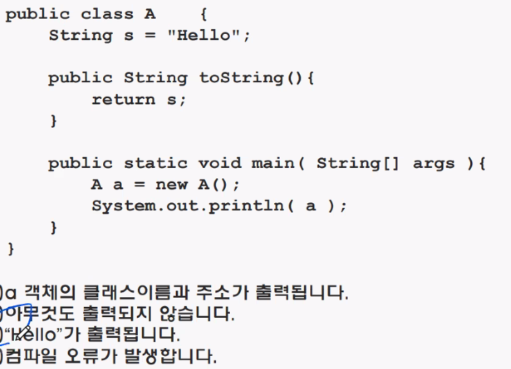 Object라는 슈퍼클래스의 toString을 오버라이딩 한것.