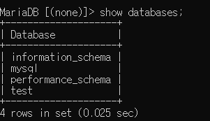 show databases; --> 데이터베이스 들 보기