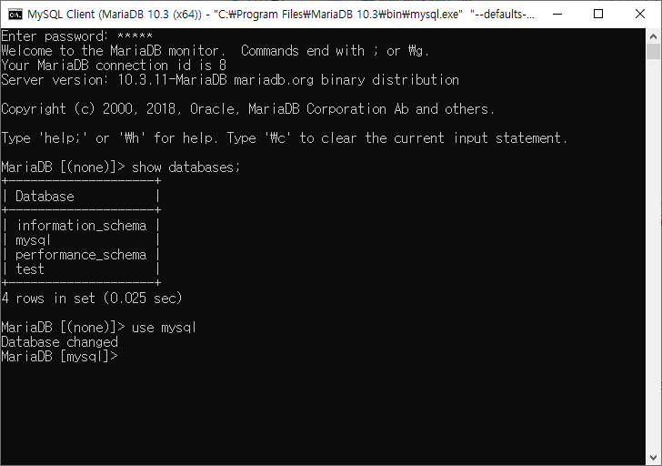 Mysql Client (MariaDB ) 콘솔창에서 테스트