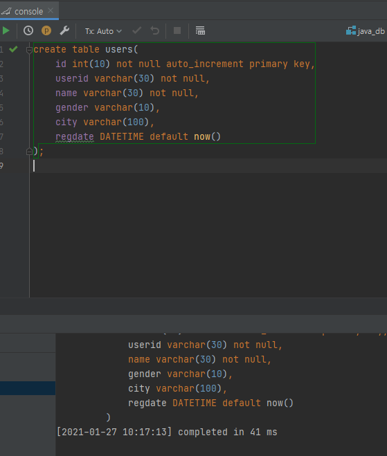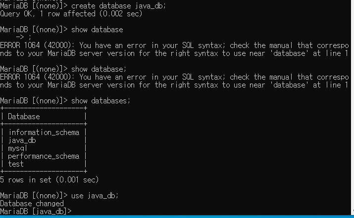 create database java_db; --> DB생성