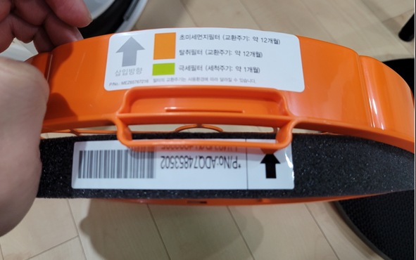 그 다음에 탈취필터(검은색) 을 넣어준다. 이건 딱히 방향은 상관 없다. 양면이 똑같이 생겼따.