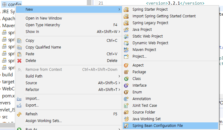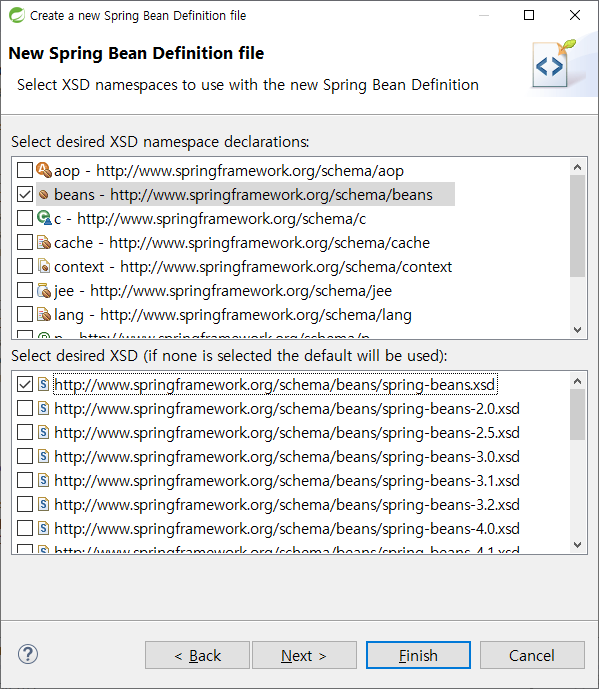 -> Spring Bean Configuration XML 파일 생성