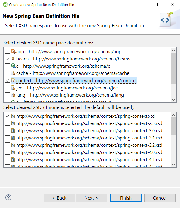 beans와 context 선택하고.. 맨 위에거 체크..