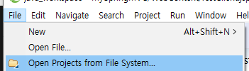 풀고 난 뒤 이클립스에서 File -> Open Project from File System 을 선택하여 Import 시킨다.