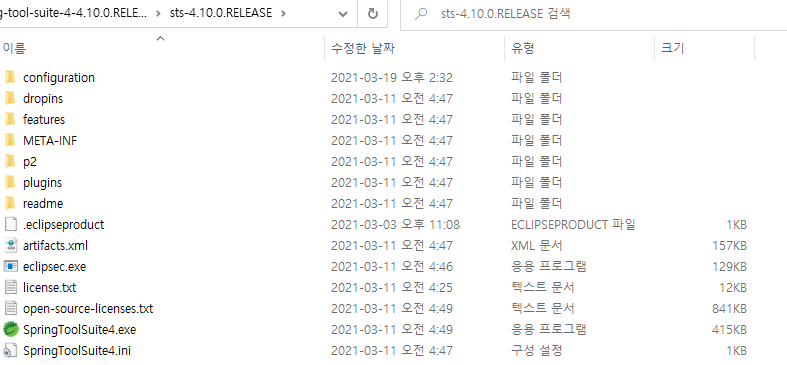 --> 풀면 드디어 STS실행 파일이 보인다.