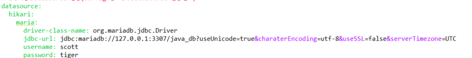 이후 Datasource config파일에 MariaDB 쓴다고 알려줘야한다.