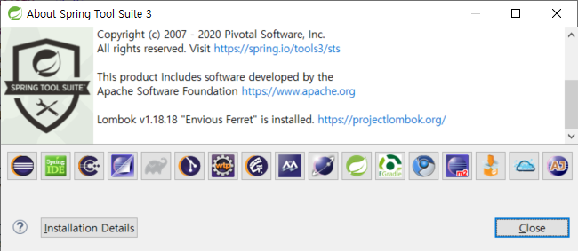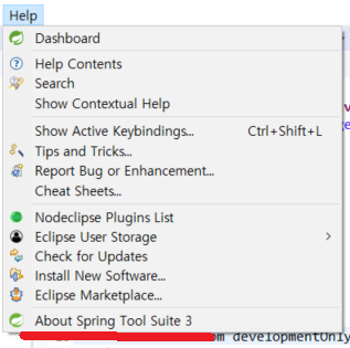 이후 STS를 실행하여 HELP -> About Spring Tool Suite 를 들어가보면...
