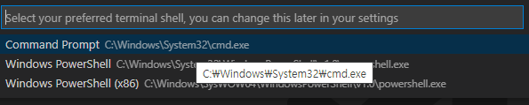 이후 terminal실행 하고 Power shell을 cmd.exe로 바꿔준다.