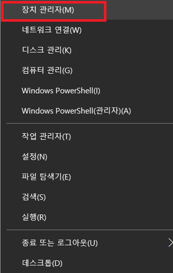 3. 장치관리자 -> 드라이버 업데이트를 클릭합니다.