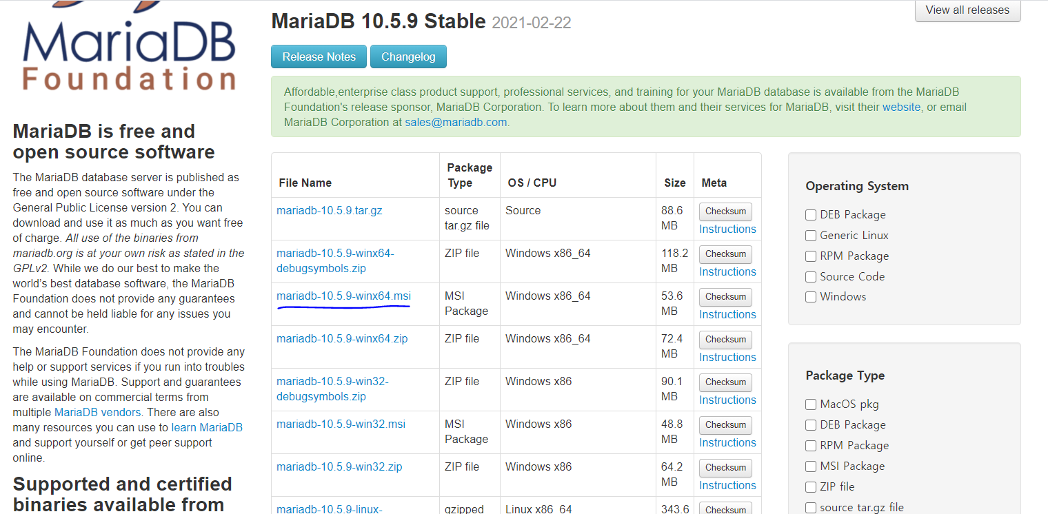 | 1. Mariadb.org에 접속, 다운로드 |
