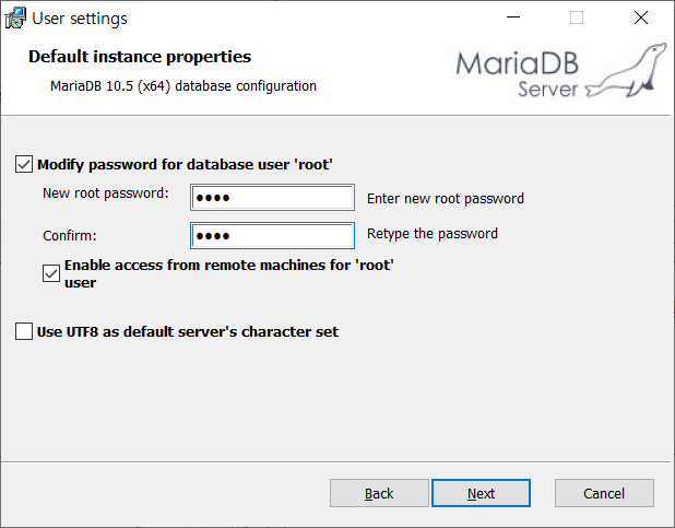 (우리같은 초보들은 로컬에서 개발하지만, 나중에 외부에서도 이 DB서버에 root로 접근하게 하기 위한 체크박스이다.)
