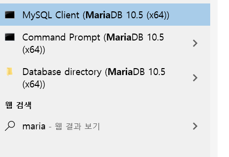 --> Window키-> maria 검색하면 다음과 같이 client 프로그램을 확인할 수 있다.